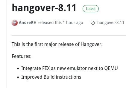 arrow-up11external-linkWine-Based Hangover 8.11 Begins Integrating FEX Emulator Supportplus-squarewww.phoronix.comtestman@lemmy.mlMEnglish · 2 years agomessage-square0linkfedilink